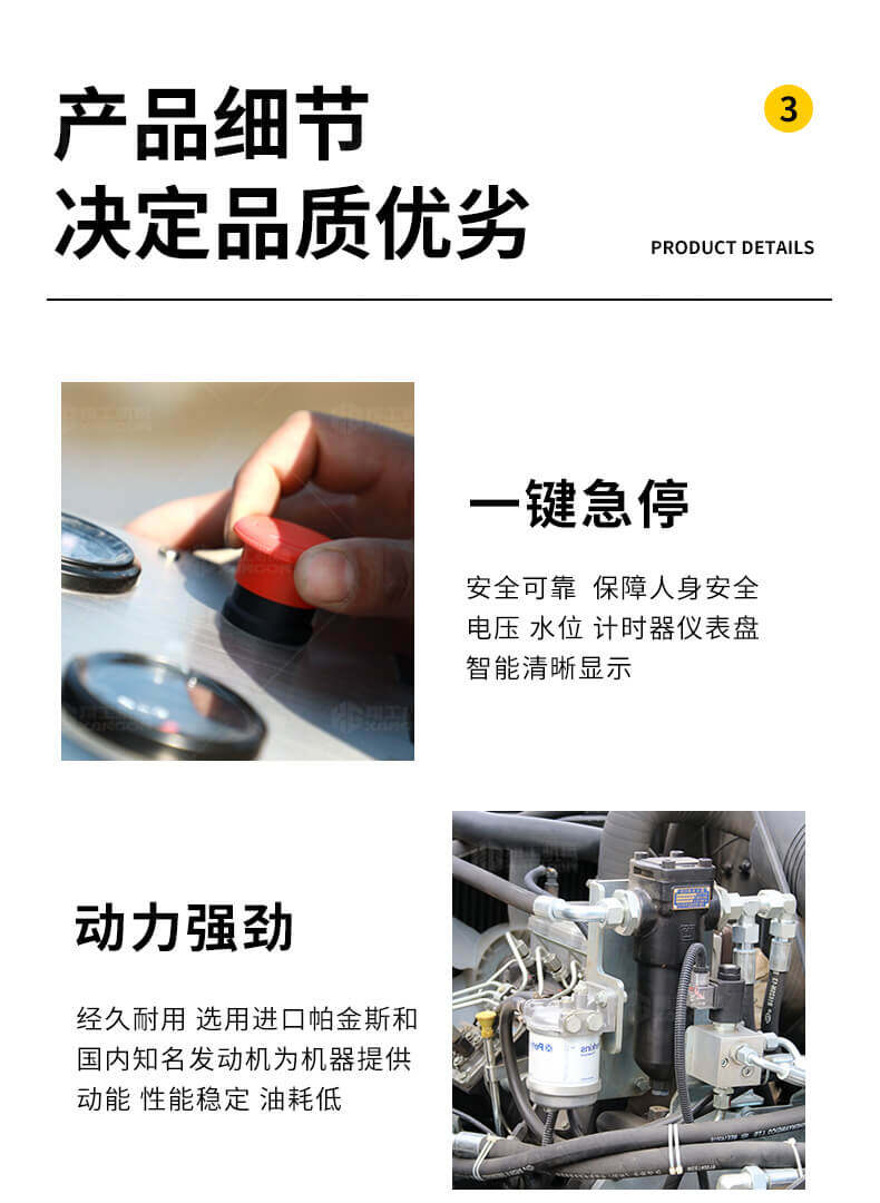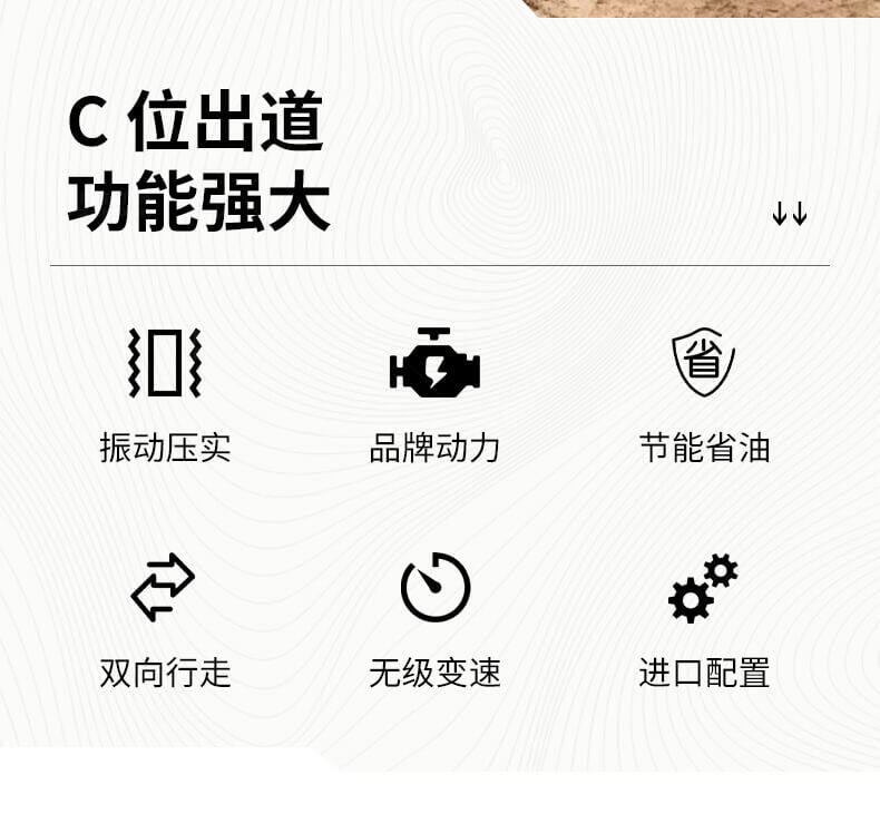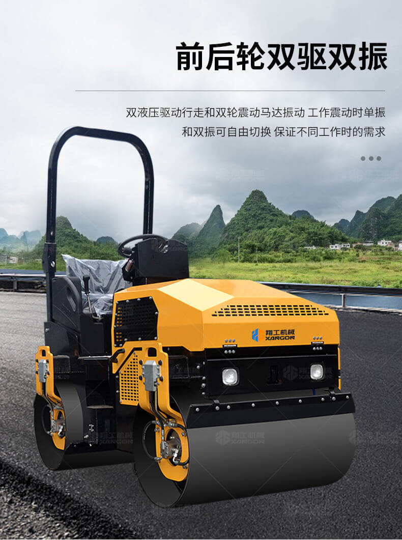 采用進(jìn)口液壓系統(tǒng),雙驅(qū)雙振,前后輪可單獨調(diào)節(jié)振動,亦可同時振動。液壓轉(zhuǎn)向,液壓驅(qū)動,液壓行走,液壓振動。進(jìn)口英國鉑金斯柴油機三缸水冷四沖程,動力強勁,性能穩(wěn)定。超快速度一小時可達(dá)12千米,無極變速。壓土,碎石,壓瀝青,壓回填土效果超乎想象。