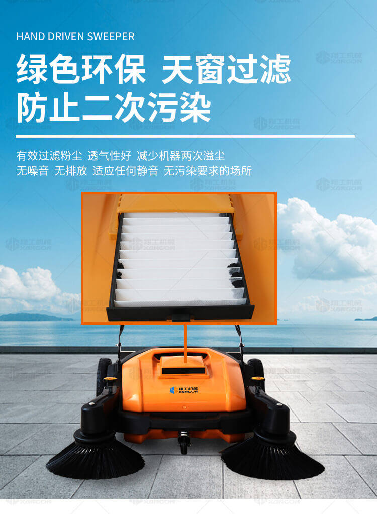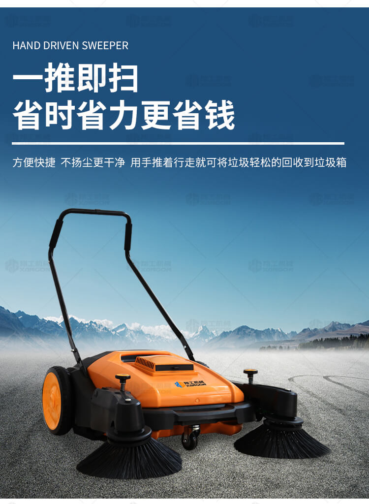 手推式掃地機(jī)能清潔房屋周邊范圍:包括小路,公路,車道和院子,能比用普通的掃把和簸箕節(jié)省5倍的時(shí)間,清掃時(shí)垃圾被迅速的收集到塵箱,簡(jiǎn)單、快速、干凈。