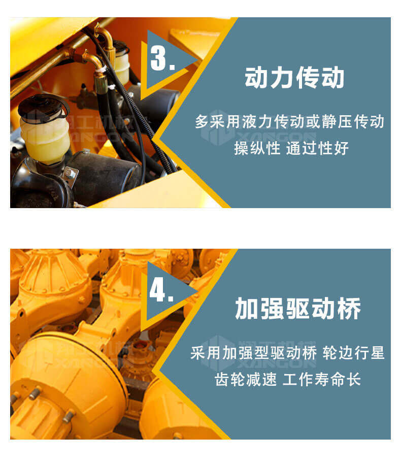 5.越野叉車發(fā)動機(jī)功率大,采用全輪驅(qū)動和越野輪胎。