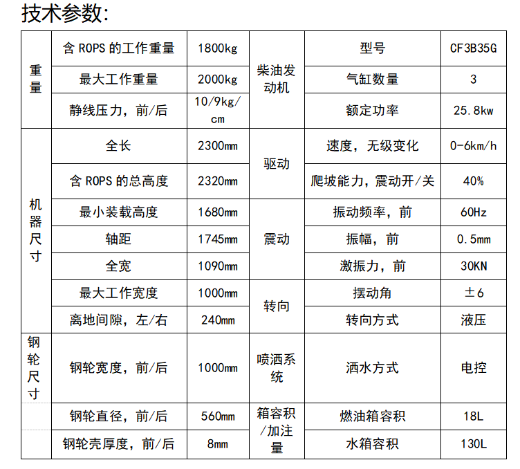 此款壓路機自重1050kg,振動力可達3噸,液壓轉向。
